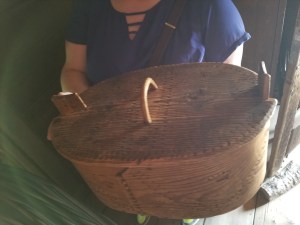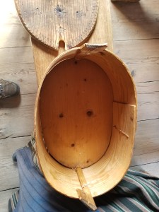 The third close is the twist lock. This is the least well documented of the closures, consisting of a reconstruction in the skansan open air museum in Stockholm, Sweden, and a line drawing attributed to the book, “woodwork in medieval novgorod”. The twist lock consists of a “T” shaped tab on one side that is fixed, and an inverted “L” shaped rotateing tab on the other side. The rotating tab is grooved and held in place through cords going through holes in the box. The fixed post is pegged to the body.