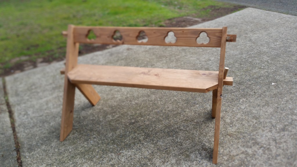A number of years ago I was introduced to a bench for SCA use. It was not a historical design unless you include 20th century americana but it did fill an important roll. It was easy to build, sturdy, had a back, and broke down into a reasonably small package. The bench in question is the leopold bench.