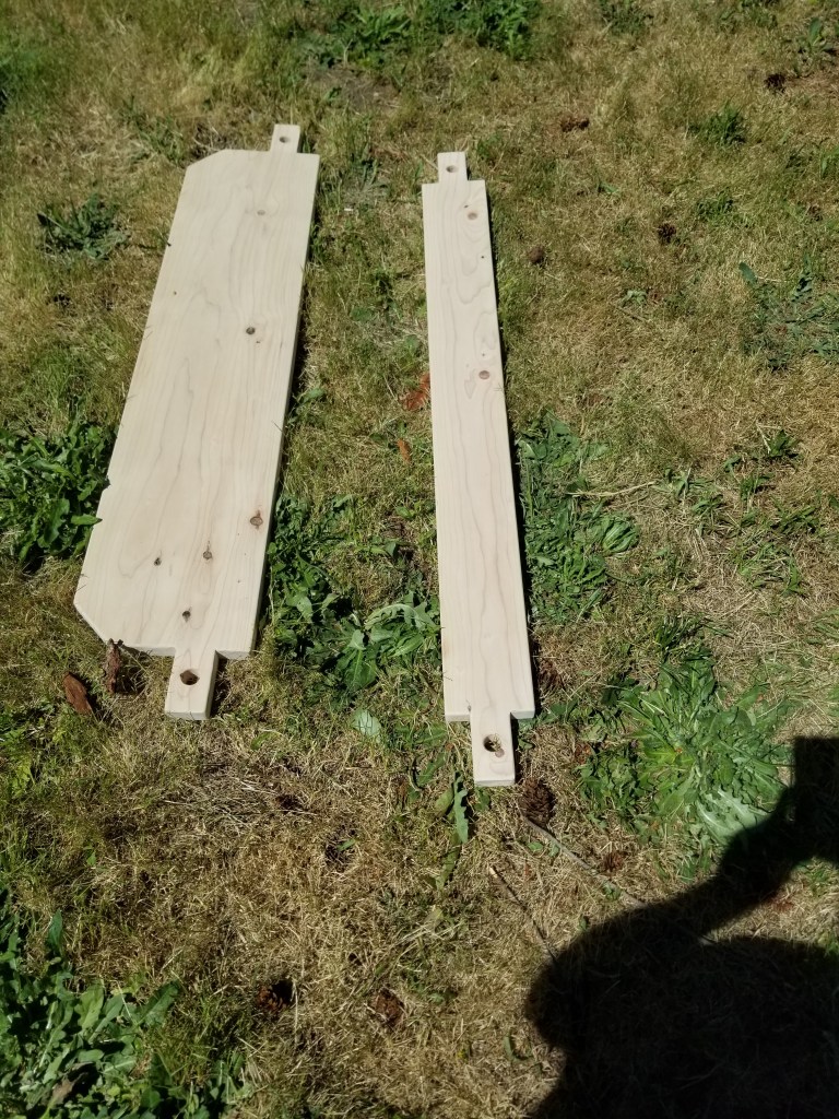 The seat, pictured above, is a little trickier. Is is also cut at 4′-8″ and will have 4″x 2 1/2″ tenons on the end, but it also has the corners of the front edge of the seat removed to both cut down on the stress on the seat and also for comfort.